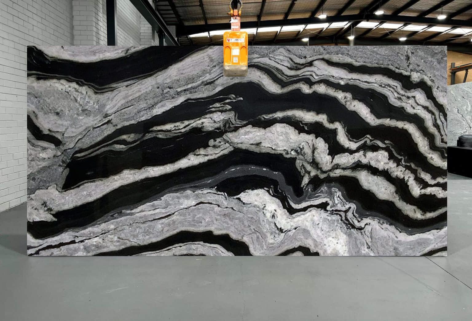 Eclipse is a sophisticated granite characterized by its dramatic black background with swirling patterns of white and gray. This granite exudes elegance and depth, making it a favored choice for enhancing both interior and exterior spaces with a touch of modernity.