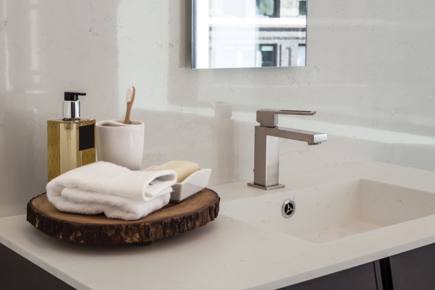 Alba is a Carrara Quartz inspired by White Carrara Italian Marble. This particular design features a white base with subtle wisps of grey color.