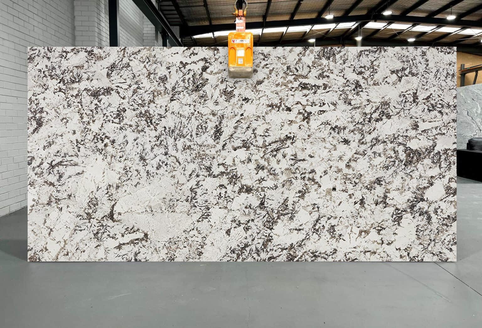 Delicatus is a striking granite originating from Brazil, characterized by its creamy white background adorned with intricate patterns of black and gray minerals. This granite exudes elegance and sophistication, making it a preferred choice for enhancing both interior and exterior spaces