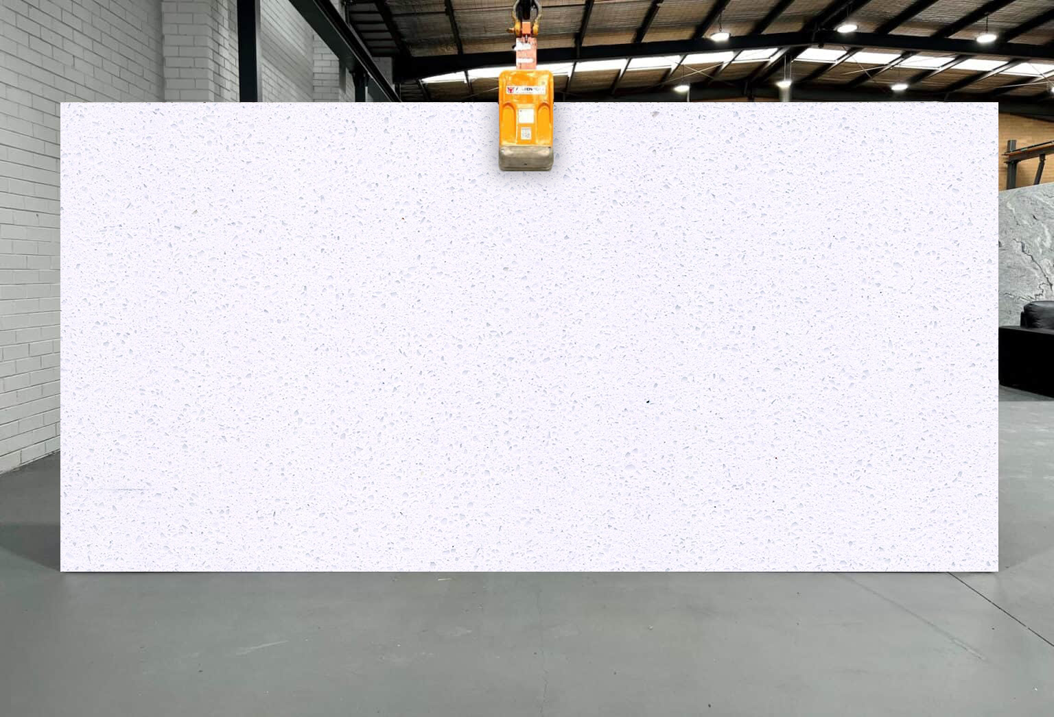 Snow quartz features a warm white base and small crystal inclusions that provide a textured look and depth. This selection is ideal for bathrooms and utility rooms but can also make a great white kitchen.