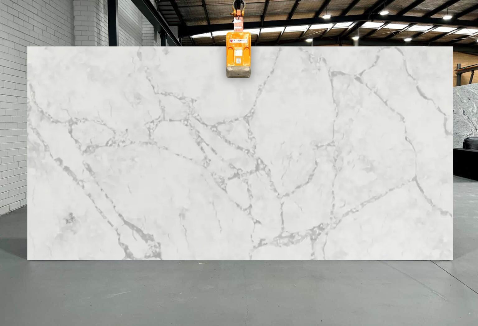 This is a gorgeous selection of quartz with a beautiful layered design with a Calacatta styled veining pattern over a textured Carrara backdrop. This is perfect for anybody that wants a marble countertop with the simplify of quartz.